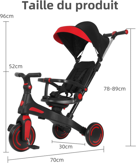 Tricycle Vélo poussette multifonction 5 en 1